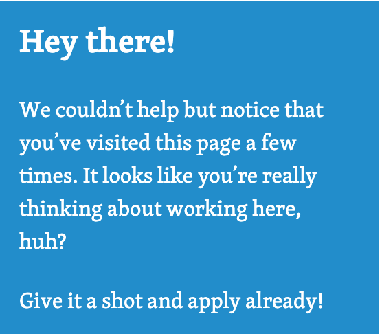 I did however drift back to the vacancy page a couple more times for another read, and on the second or third visit the following message appeared: